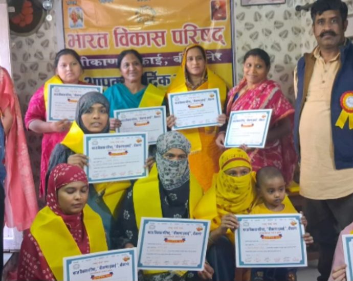 बीकानेर 26 नवंबर।भारत विकास परिषद, बीकाणा इकाई द्वारा गोस्वामी चौक में स्थित सिलाई प्रशिक्षण केंद्र की महिलाओं का, महिला सशक्तिकरण कार्यक्रम के तहत सम्मान के कार्यक्रम का आयोजन किया गया।कार्यक्रम