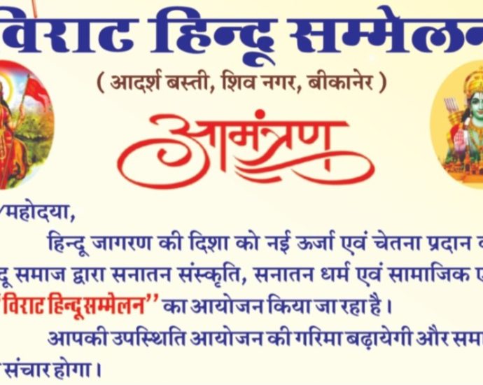बीकानेर 18 जनवरी।सांगलपुरा हिन्दू सम्मेलन आयोजन समिति के तत्वावधान में दिनांक 25.01.2026 को गुलमोहर पार्क, जेएनवी सेक्टर 8 पर भव्य हिंदू सम्मेलन का आयोजन किया जा रहा है। इस सम्मेलन